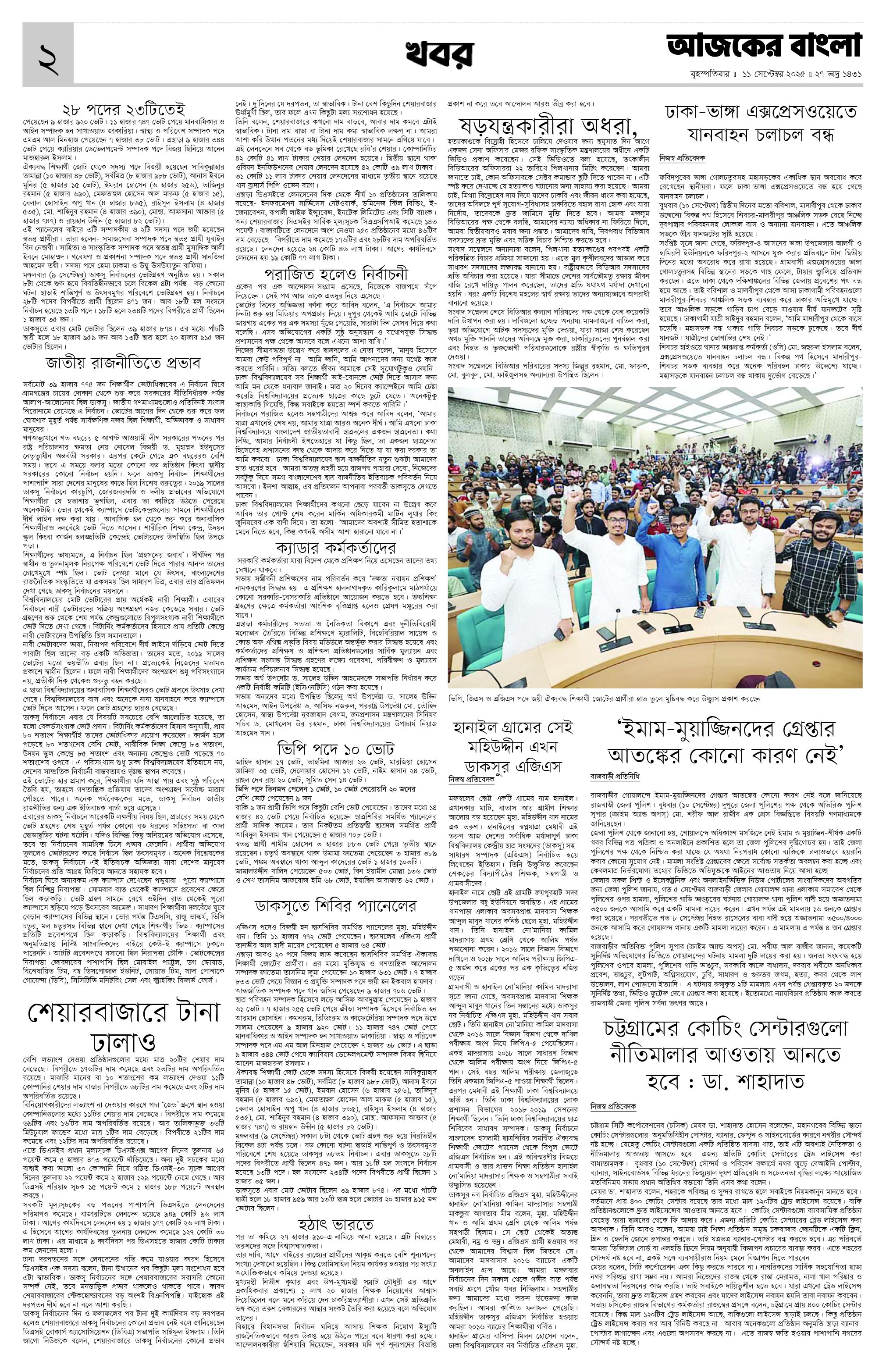 আজকের পত্রিকা